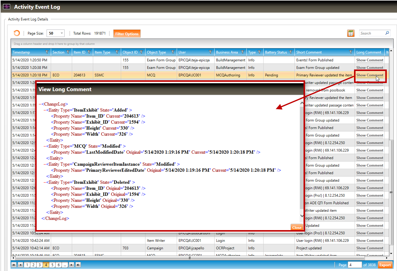 The activity event log provides a snapshot of all system processes or actions performed by users. Detailed information is available for most entries.
