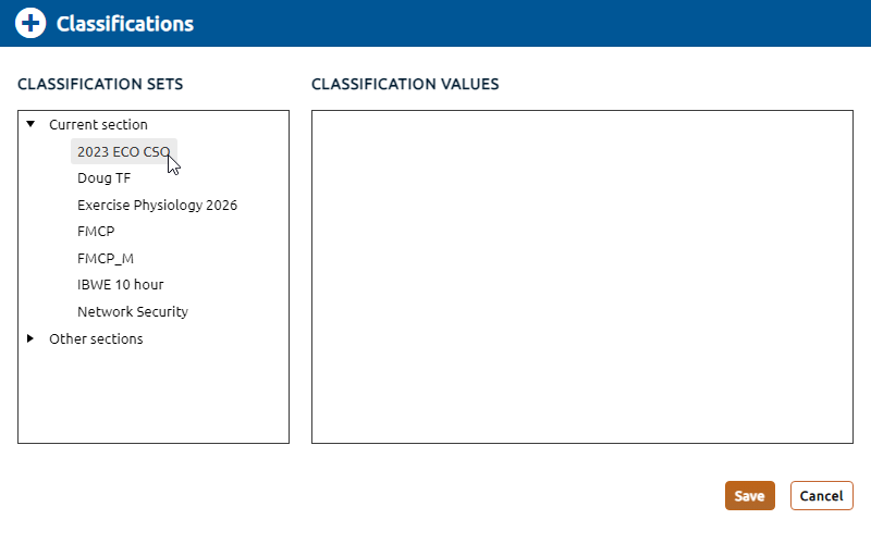 5. To assign a classifications that isn't displayed by default for the section, click the + icon (highlighted in red, below).