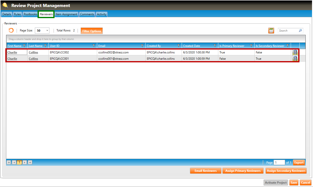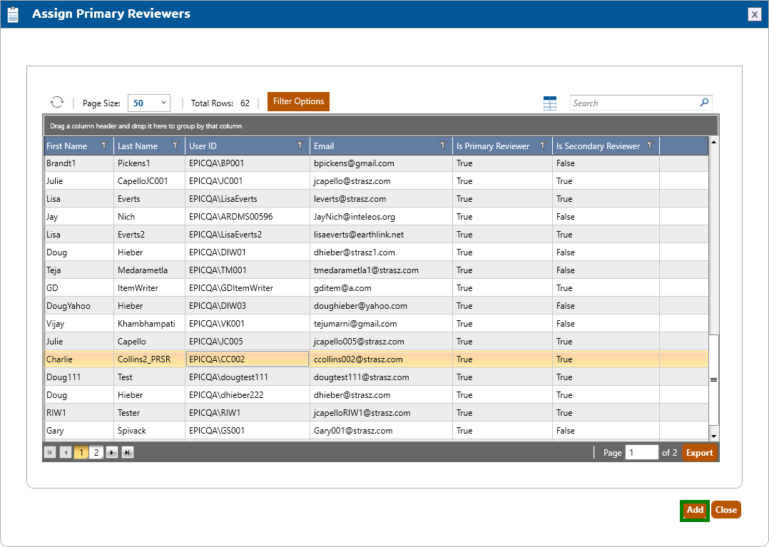 To add a primary reviewer to the project, click the Assign Primary Reviewers button. The Assign Primary Reviewers popup window will appear (shown below).