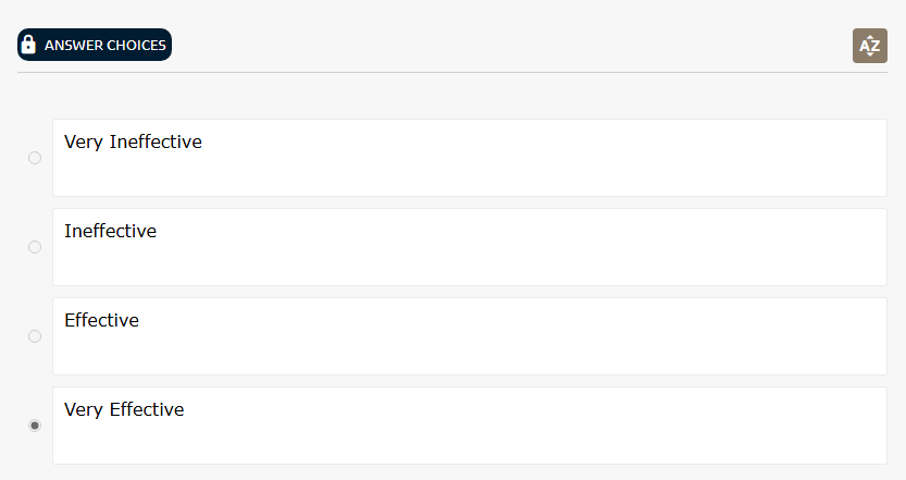 In the example below, the user has entered four answer choices, then chosen "Very Effective" as the key.