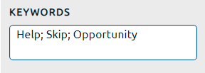 13. In the Keywords field (highlighted in red, below), enter keywords and phrases for the item, each separated by a semicolon (;).