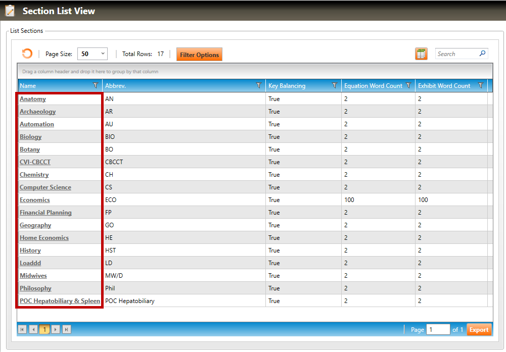 9. Exhibit Default Word Count defaults to the value of 2, but the default can be reset for the section. This field is used to determine the word equivalent for an exhibit when calculating the word count of an item or passage. This value will be used for any exhibit in the section that uses the section default value.