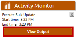 8. When the bulk update is complete, click the View Output button that appears in the Activity Monitor: