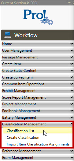 1. In the Workflow menu, click Classification Management > Classification List: