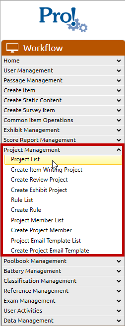 1. In the Workflow menu, click Project Management > Project List: