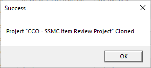 3. The Project Name field is populated with a default name that is derived from the parent project name with an appended "_1" . Update this field as needed to represent the new cloned project.
