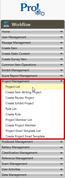 1. In the Workflow menu, click Project Management > Project List: