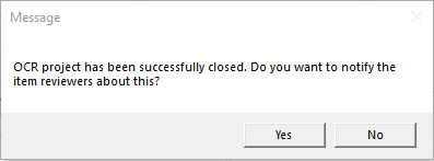 6. A message will appear, asking you if you wish to notify the item reviewers about the project closing (shown below). Select Yes or No.