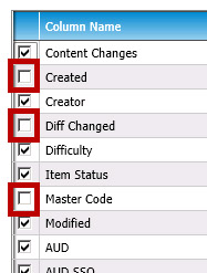 To add or remove columns being displayed, check or uncheck individual columns (unchecked columns are highlighted in red, below):