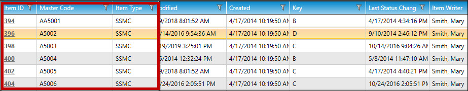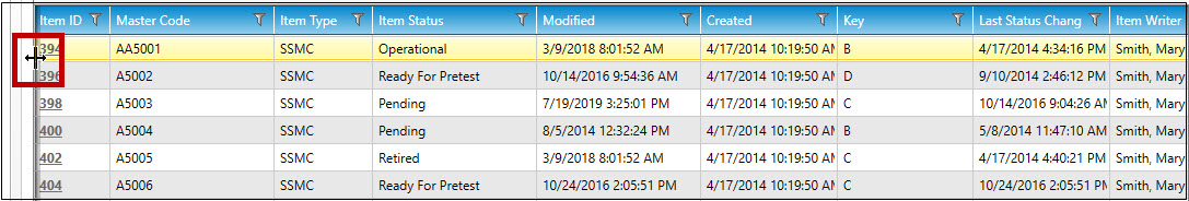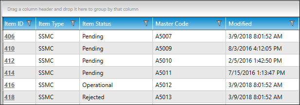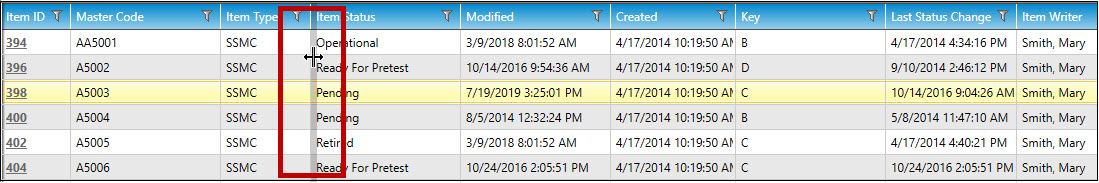 The columns will re-order themselves. In the example below, the Item Status column is now ordered before the Master Code column.