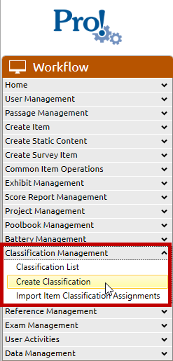 1. In the Workflow menu, click Classification Management > Create Classification: