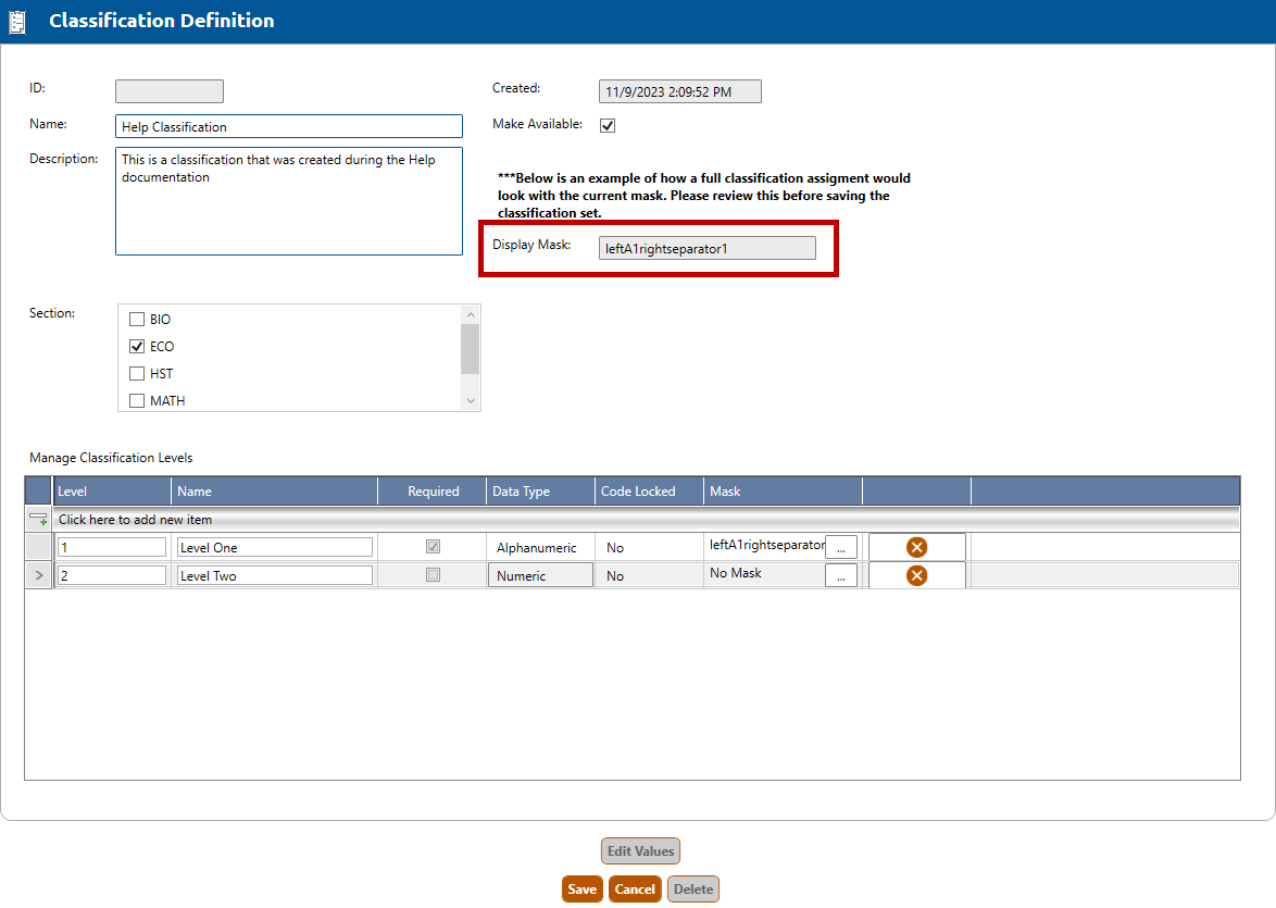 13. Click the Save button to save the new classification definition.