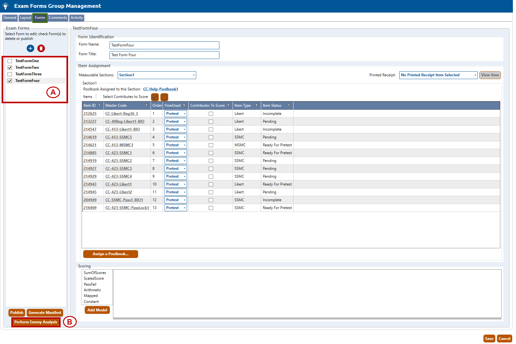 2. Navigate to the Forms tab (highlighted in green, below) for the selected exam form group.