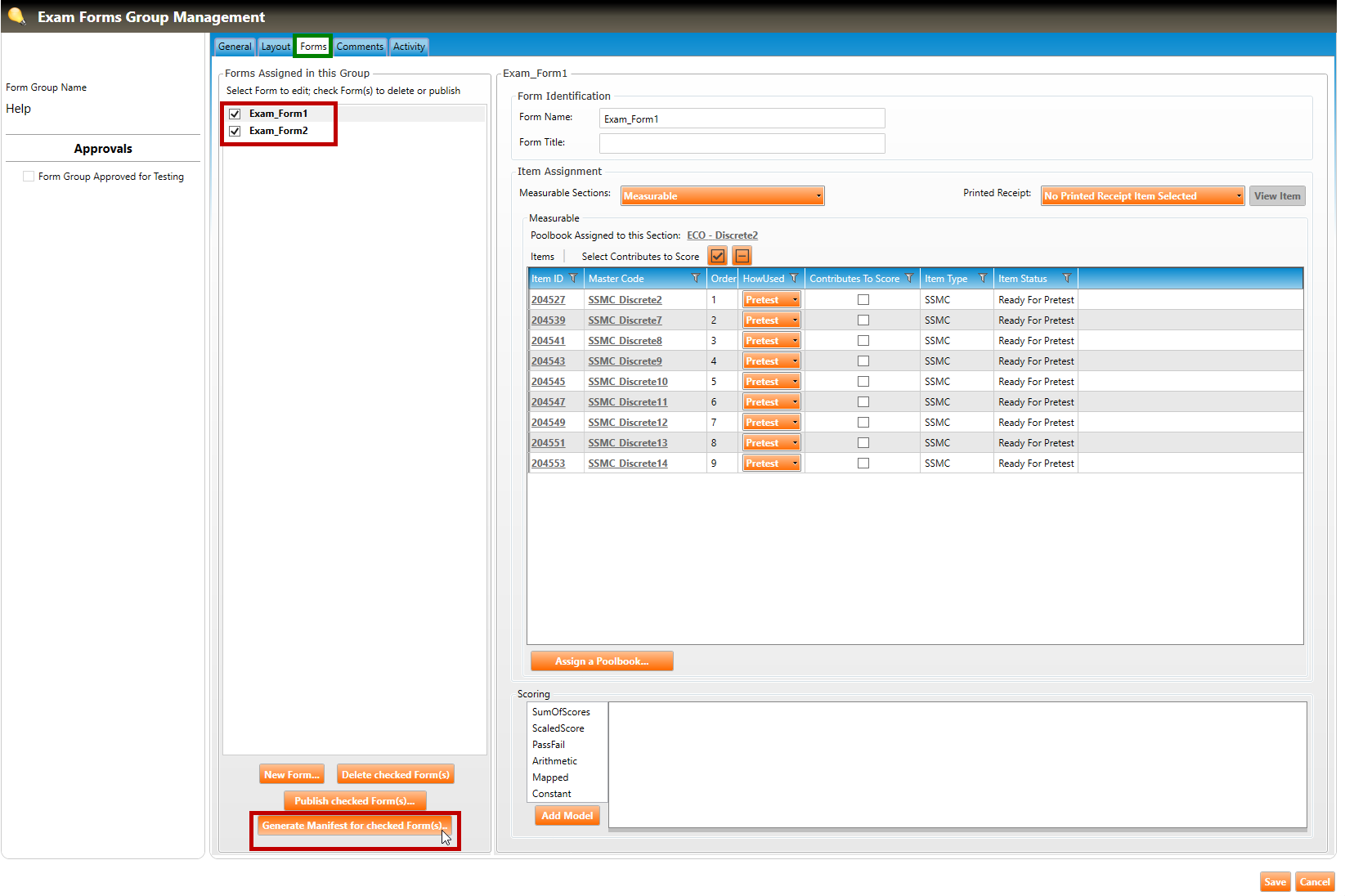 Note: An exam manifest can be generated for all driver types and produced for a form group containing any item type.