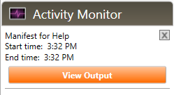 Pro! will being the generation of the manifest in the Activity Monitor located at the bottom of the Workflow pane. Once completed click the View Output button.