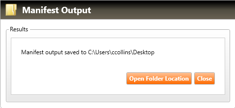Select the Open Folder Location button from the Manifest Output dialog.