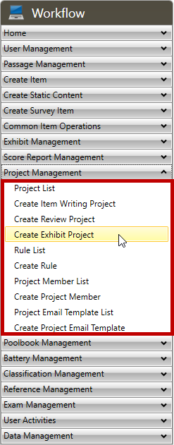 1. In the Workflow menu, click Project Management > Create Exhibit Writing Project: