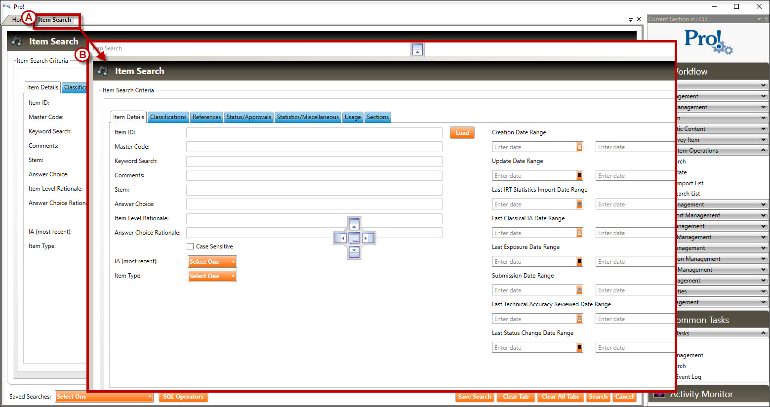 Drop the tab (or the navigation pane) and it will now float as its own window. In the example above, the tab has been converted to a floating window called Item Search.