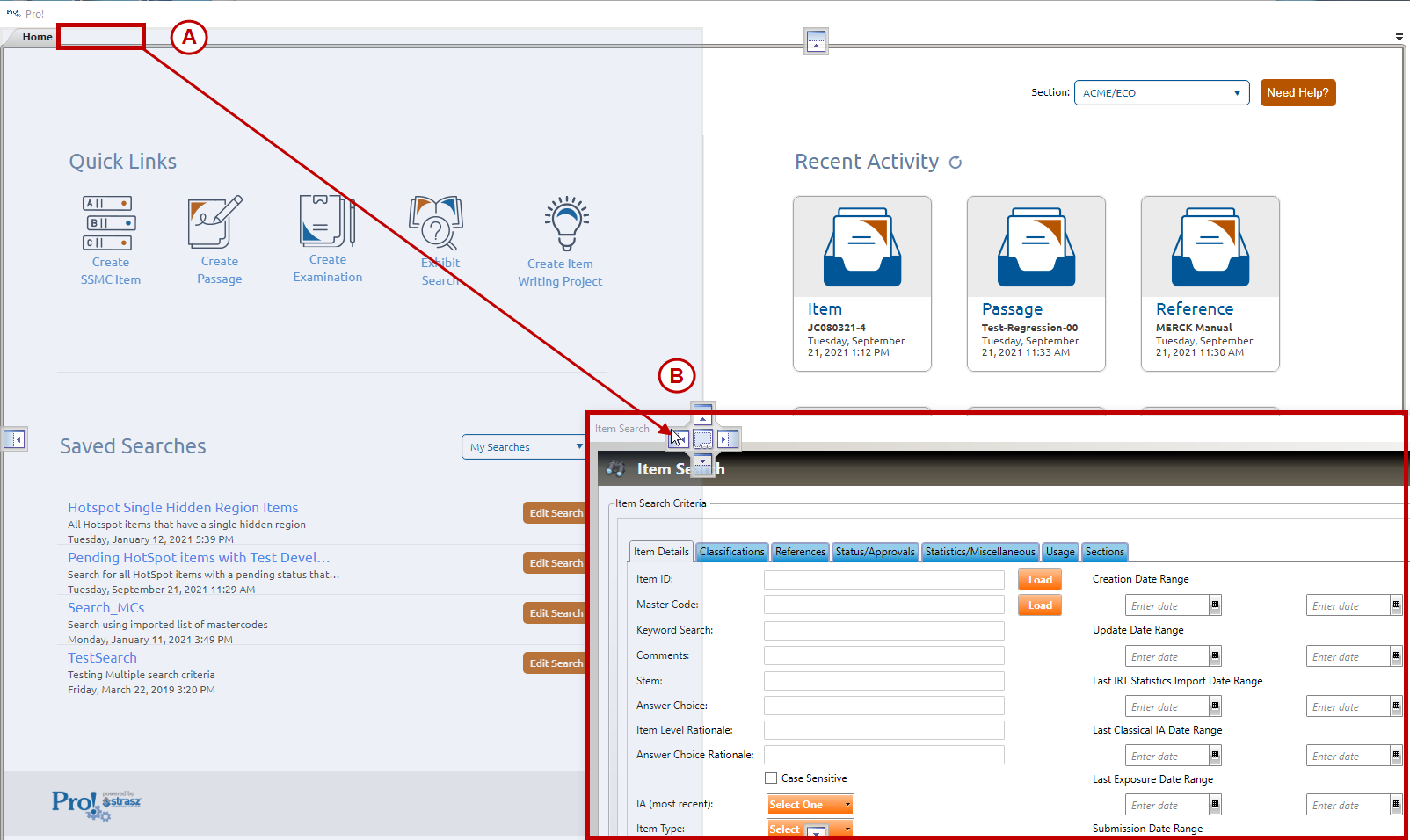 3. To move a tab or the navigation pane to the side of the Pro! environment: