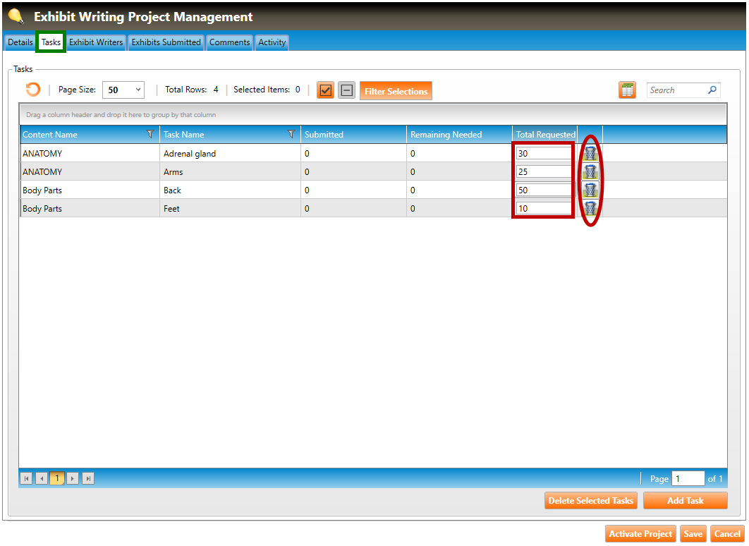 2. You may edit the Total Requested field of existing tasks (highlighted in red, above).