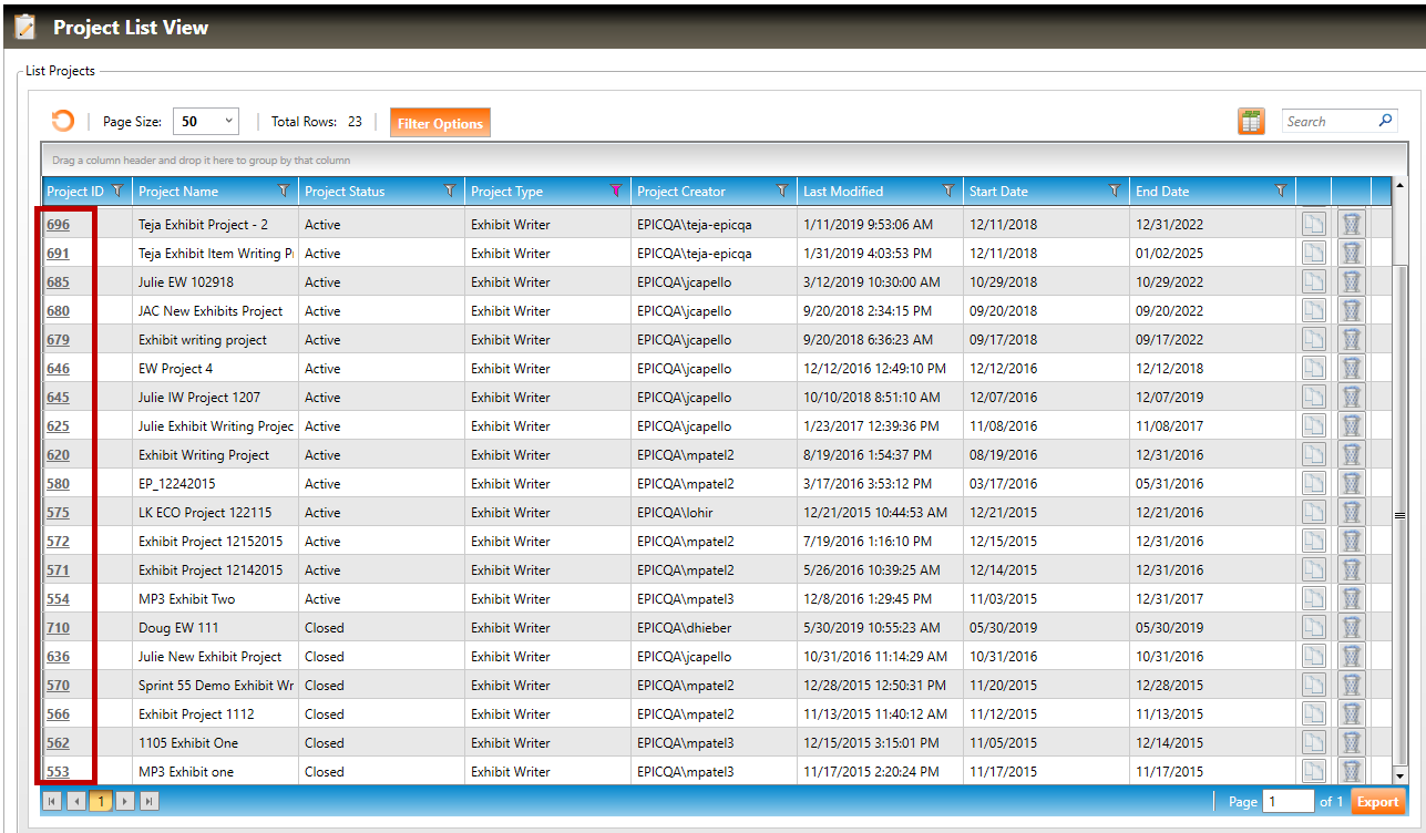 hyperlink of the project you wish to edit (highlighted in red, below).