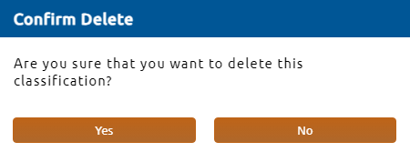 6. Select Yes in the Confirm Delete dialog to persist the deletion of the classification.