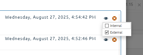 5. To change the comment's visibility, click the icon and select Internal or External from the list.