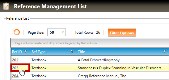 3. Click the Reference ID for the reference you wish to edit: