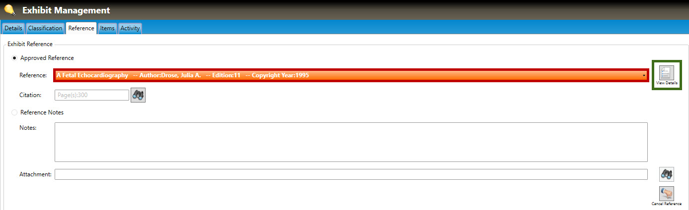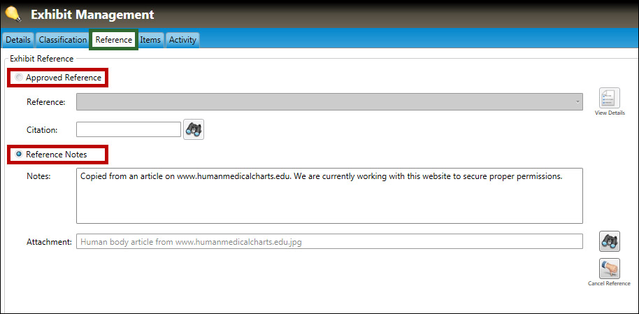 3. Click either the Approved Reference or Reference Notes radio button (highlighted in red, above), and follow the appropriate instructions: