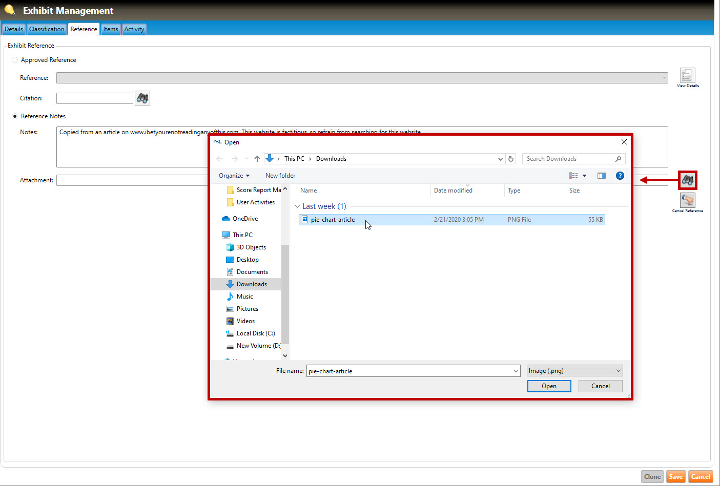 2. Click here for full instructions on assigning a reference to an exhibit.
