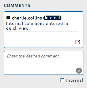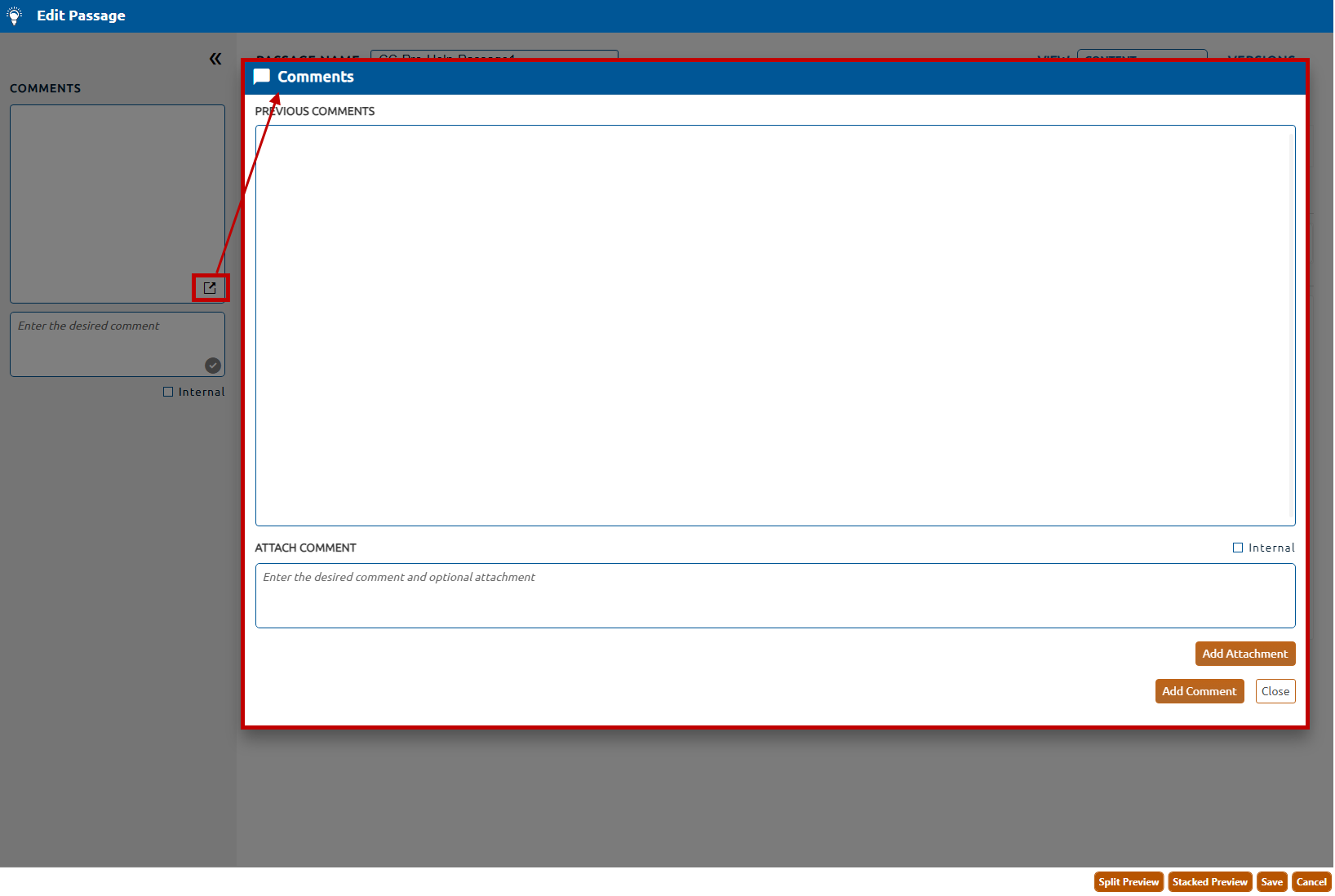 1. In the Comments Quick View, select the dialog icon (highlighted in red, below). This will open the Comments dialog.