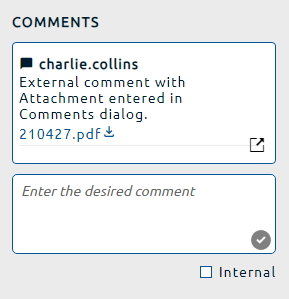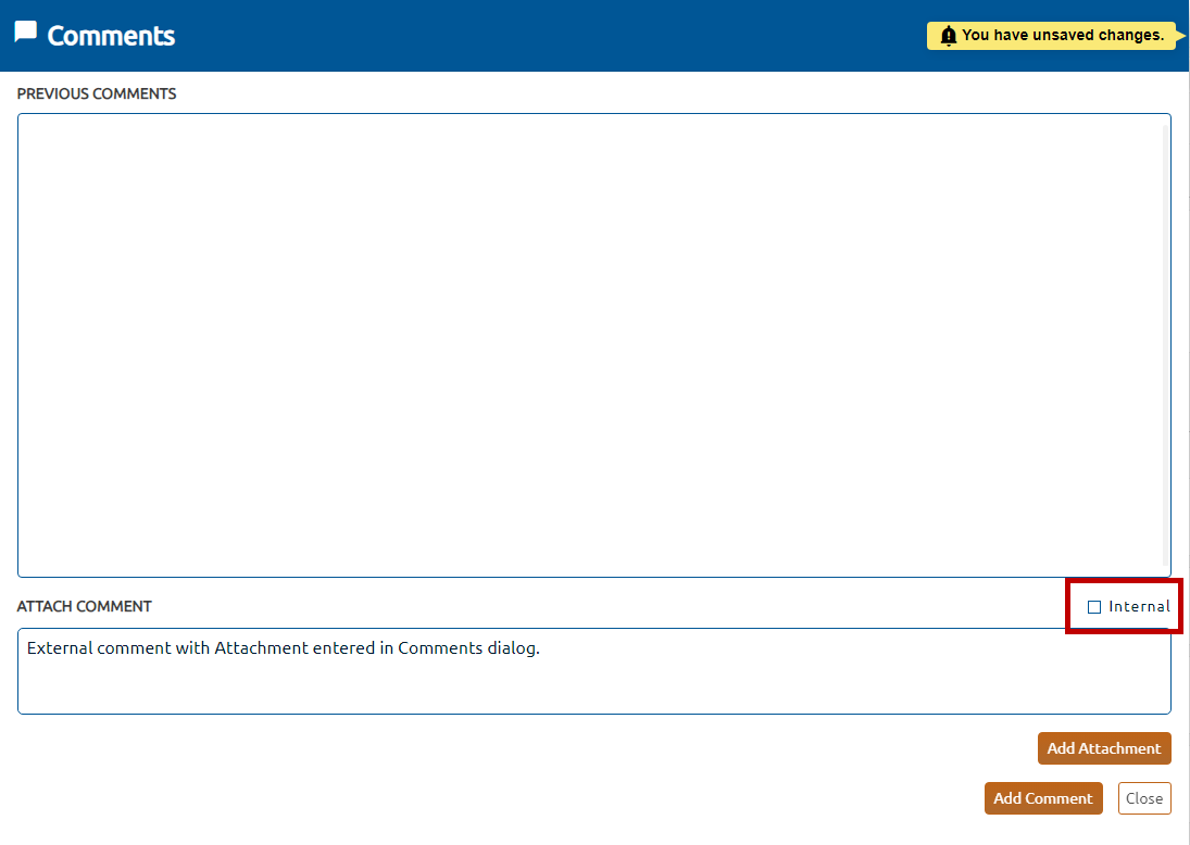 3. Checking the Internal checkbox will identify the comment as one that is only viewable within Pro!. External project members will not have access to view this comment. Leaving the box unchecked allows the comment to be visible to all.