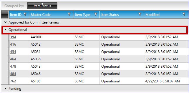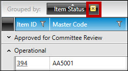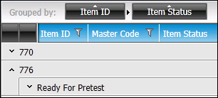 The tabular display will refresh with the new grouping levels. In the example below, the user has re-ordered the results by Item ID, then by Item Status.