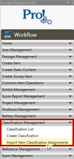 1. In the Workflow menu, click Classification Management > Import Item Classification Assignments: