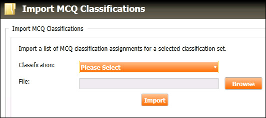 You can import a CSV file that contains a list of item IDs and classification assignments. Upon import, the classifications are applied to items.