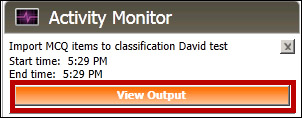 6. When the import is complete, click the View Output button that appears in the Activity Monitor: