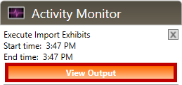 4. After the data is imported, click the View Output button in the Activity Monitor: