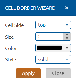 Click on the cell you wish to apply the border style to and click the Cell Border Wizard button: