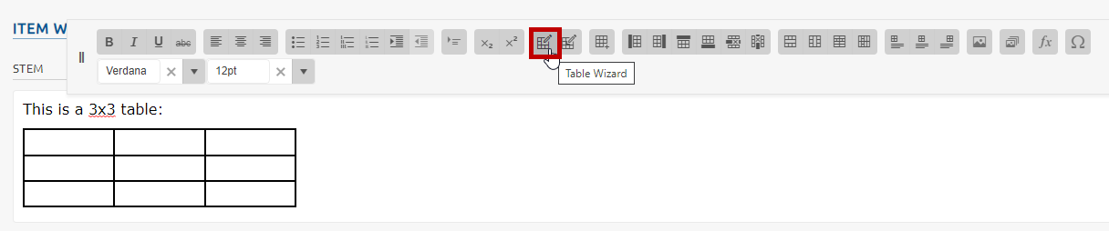 2. The formatting bar will now present additional buttons to use specifically for the selected table. One of those buttons is the Table Wizard button (highlighted in red, below)