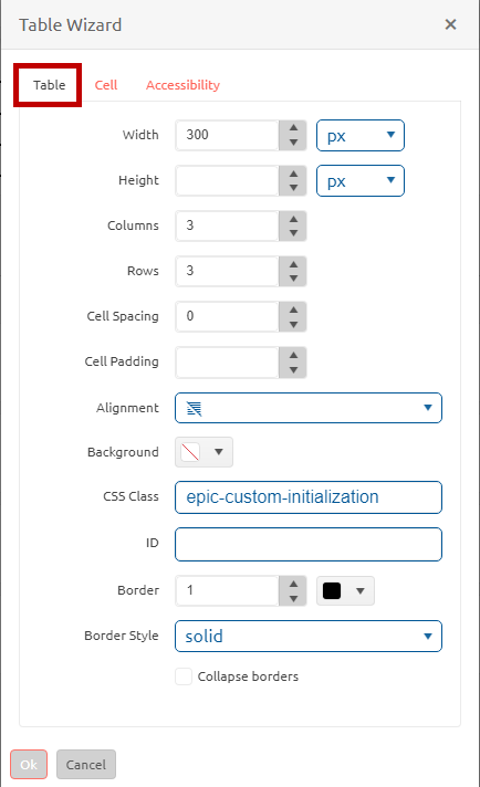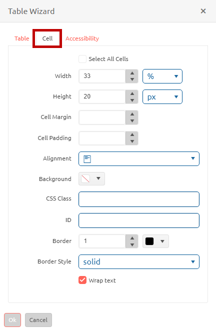 The table wizard allows you to apply other formatting properties to your table and cells, such as alignment, column and table widths, padding and spacing, and cell background colors.
