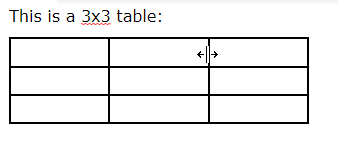 For column resizing, drag the column dividing line left or right. For row resizing, drag the row dividing line up or down.