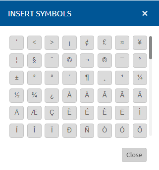 Click the desired symbol(s) to insert it into the item.