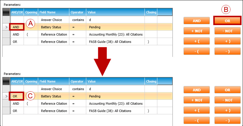 To do this, the user would need to change AND and OR expressions, and insert parentheses ( ) throughout. To do this, the user would follow Steps 2 through 5, below: