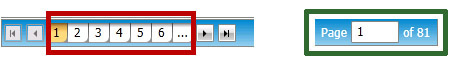 2. To move to a specific page in the results, click the desired page number (highlighted in red, below) or type the selected page number into the Page box at the bottom of the screen (highlighted in green, below):