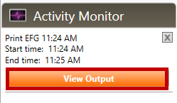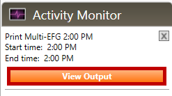 3) The print request progress will display in the Activity Monitor. When complete, click the View Output button (highlighted in red, below).