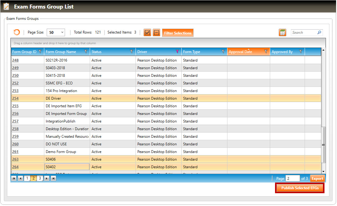 To publish mulitple form groups from the exam form group list: