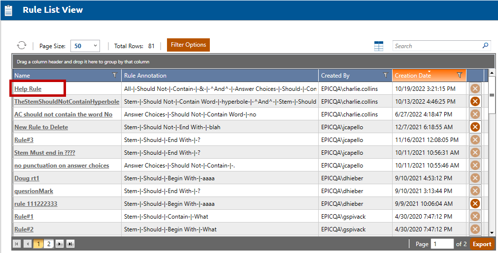 Rule List View