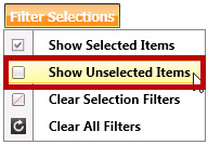 Repeat Step 4, above, but instead click the Filter Selections button, then Show Unselected Items (highlighted in red):