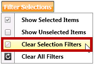 Click the Filter Selections button, then Clear Selection Filters (highlighted in red):