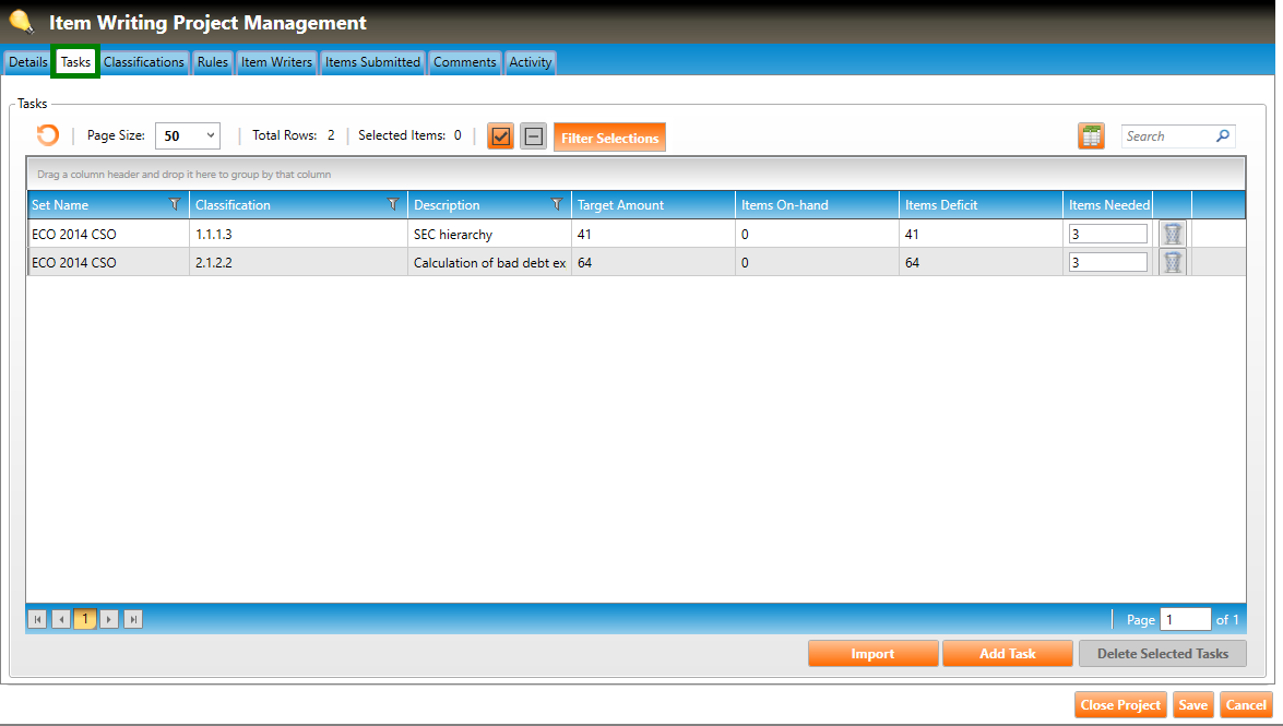 Viewing item writing project tasks